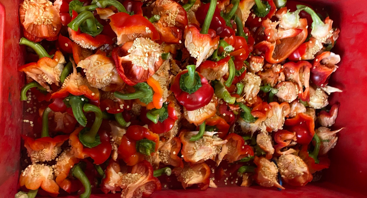 Ớt ngọt cần được định vị ổn định để đảm bảo loại bỏ lõi sạch và phân đoạn đồng đều. Hệ thống loại bỏ lõi ớt sử dụng các khay được thiết kế đặc biệt để giữ từng sản phẩm ở đúng hướng trong suốt quá trình xử lý.