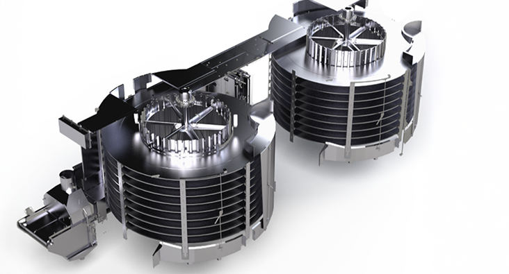Lò nướng xoắn ốc của chúng tôi kết hợp thời gian nấu lâu với khả năng kiểm soát khí hậu chính xác trong một thiết kế thẳng đứng nhỏ gọn. Sản phẩm di chuyển trong lò trên băng tải xoắn ốc, cho phép nấu chín nhẹ nhàng và đồng đều bằng không khí nóng, hơi nước hoặc kết hợp cả hai. Luồng khí, độ ẩm và tốc độ băng tải có thể điều chỉnh giúp các nhà chế biến kiểm soát được sự phát triển màu sắc, khả năng giữ ẩm và kết cấu cuối cùng. Khi được sử dụng sau các quy trình làm kín bề mặt như nấu tiếp xúc với vỉ nướng băng tải hoặc máy chiên của chúng tôi, lò nướng xoắn ốc này trở thành một công cụ mạnh mẽ để tối đa hóa năng suất đồng thời duy trì sản phẩm cuối cùng có hình thức hấp dẫn và đồng nhất. Khách hàng của chúng tôi báo cáo đạt được mức tăng năng suất từ 4 đến 7% khi sử dụng vỉ nướng băng tải hoặc máy chiên trước khi sử dụng lò nướng xoắn ốc của chúng tôi.