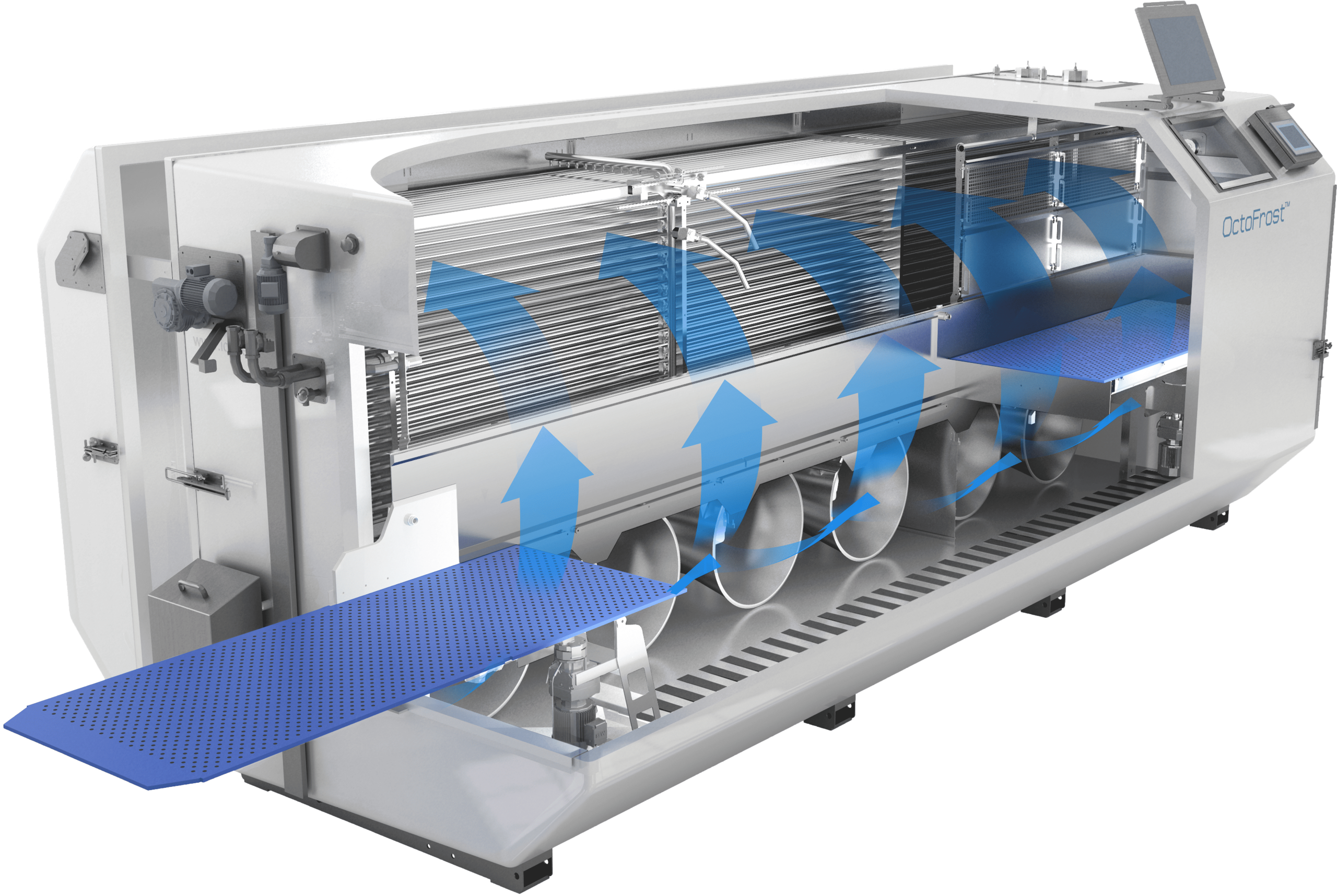 OctoFrost Impingement Freezer là giải pháp tuyệt vời để đông lạnh lớp vỏ thực phẩm mềm trước khi sấy đông, đảm bảo chúng giữ nguyên hình dạng và cấu trúc trong suốt quá trình. Bằng cách đông lạnh nhanh lớp ngoài, công nghệ của chúng tôi cung cấp bề mặt chắc chắn bảo vệ, ngăn ngừa biến dạng và dính trong quá trình xử lý và thăng hoa. Điều này đặc biệt có lợi cho các sản phẩm mềm, tinh tế như các phần thức ăn cho thú cưng dạng viên thịt hoặc các loại thực phẩm có độ ẩm cao khác. Với khả năng kiểm soát luồng khí chính xác và đông lạnh hiệu quả, OctoFrost giúp tối ưu hóa kết quả sấy đông đồng thời bảo toàn tính toàn vẹn và chất lượng của sản phẩm cuối cùng.